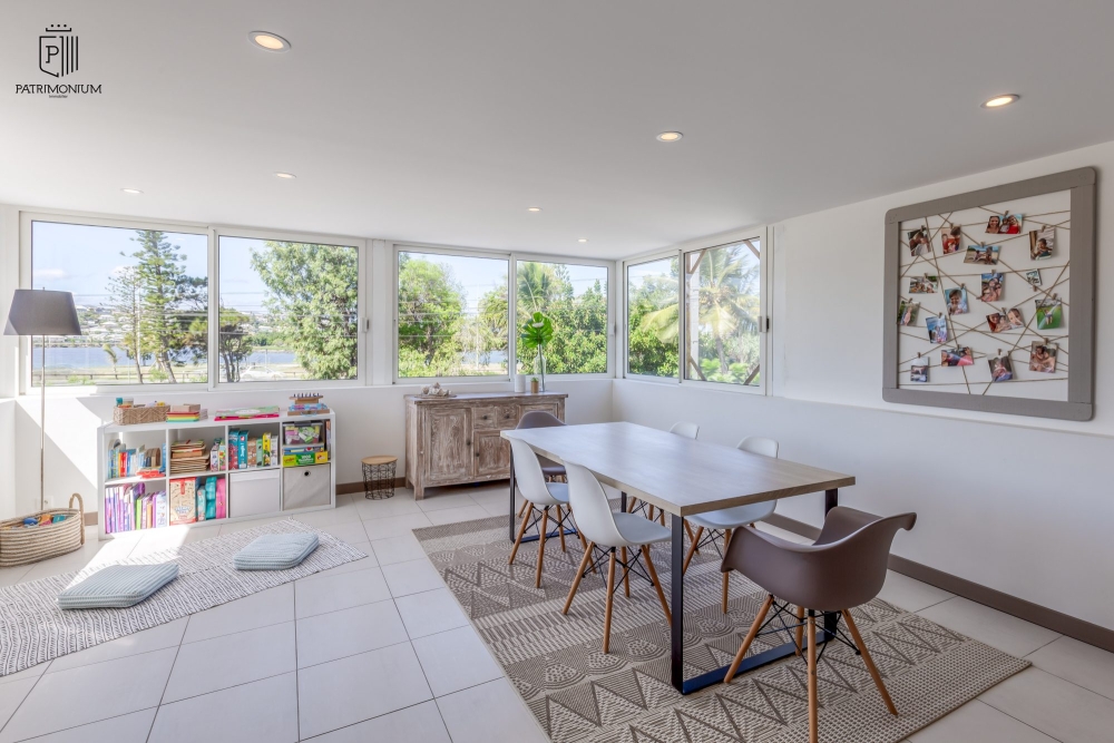 Une spacieuse terrasse fermée avec vue mer vient compléter cet espace, idéal pour les moments de convivialité en famille ou entre amis.