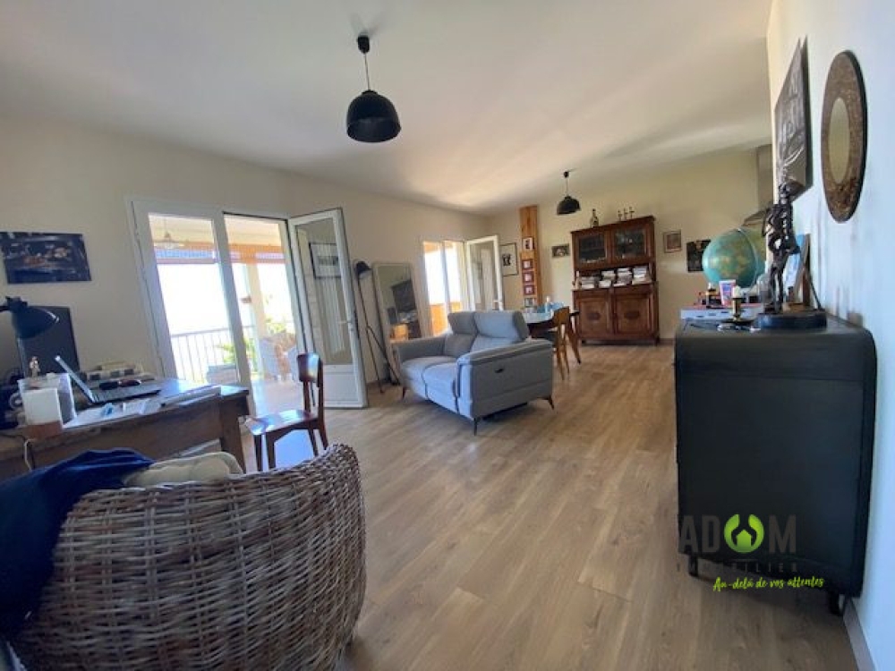 La villa est composée d'un séjour avec cuisine ouverte aménagée, toute équipée avec ilot central, trois chambres, une salle d'eau, un dégagement et un toilette indépendant.