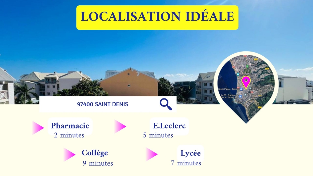 À quelques minutes des infrastructures clés comme le Centre Hospitalier Félix Guyon et le E.Leclerc Saint Denis, vous aurez un accès rapide aux COMMODITÉS QUOTIDIENNES tout en profitant d'un environnement TRANQUILLE.