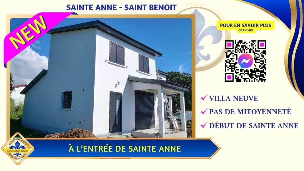 Si vous êtes à la recherche d'une MAISON NEUVE avec 3 CHAMBRES idéalement située à SAINTE ANNE, alors cette maison à vendre à l'entrée de la ville, juste après Saint-Benoit, est faite pour vous.