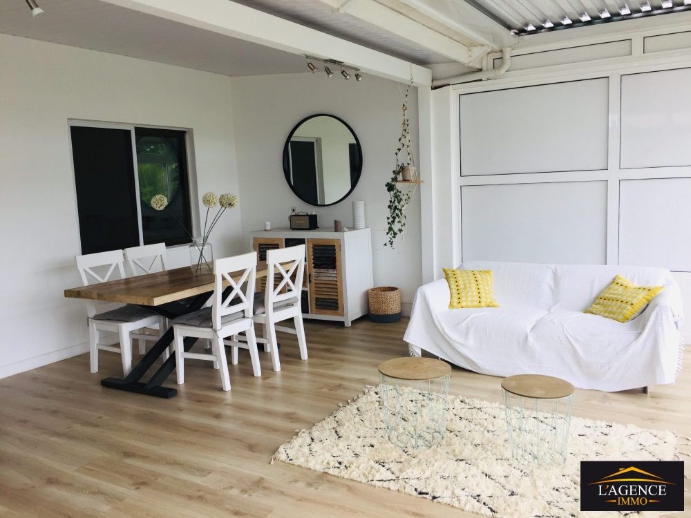 Cette villa jumelée se distingue par son caractère atypique et son extérieur. Elle se compose d'un lumineux et vaste séjour, une cuisine équipée, aménagée et fonctionnelle, d'un espace buanderie, d'une salle d'eau et d'un WC, de deux chambres, d'un bureau et d'une terrasse en deck qui vous invite à des moments de détente tout en profitant d'une vue dégagée sur les environs.