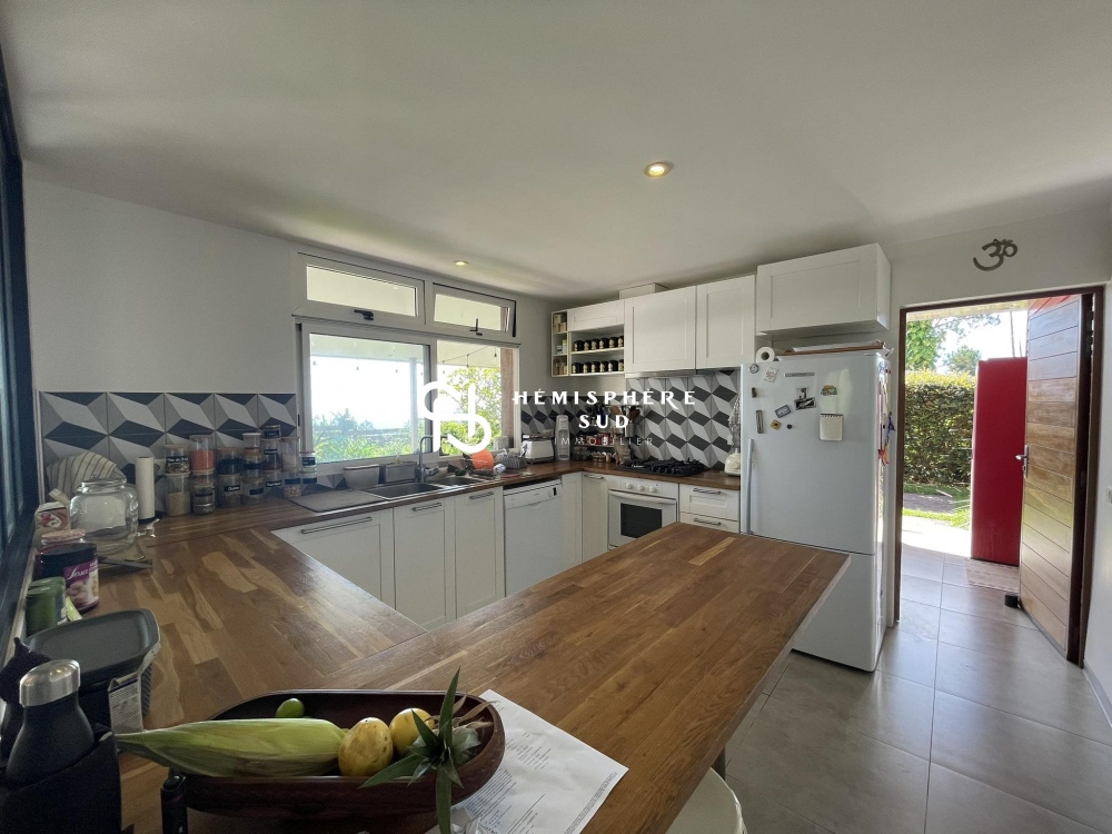 Nichée sur les hauteurs de Mahinarama, édifiée sur une parcelle de 625 m², cette propriété bénéficie d'une vue dégagée sur les montagnes environnantes ainsi qu'une petite vue océan. Elle offre également une jolie piscine en mosaïque avec une douche extérieure au bord de la terrasse couverte de 30 m².
