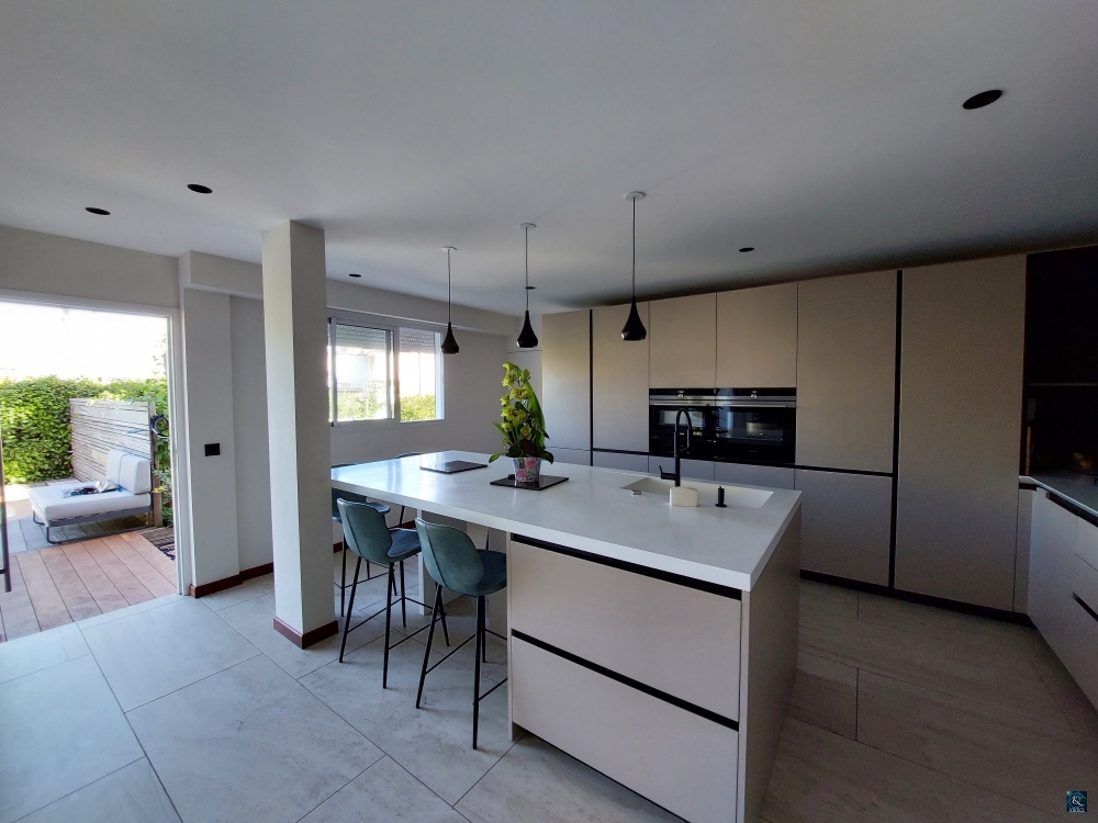 Vous trouverez au rez de chaussée une cuisine moderne, équipée et ouverte sur un grand salon très lumineux.