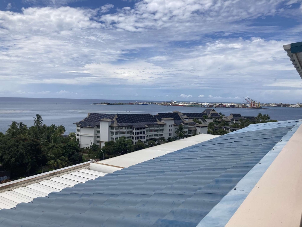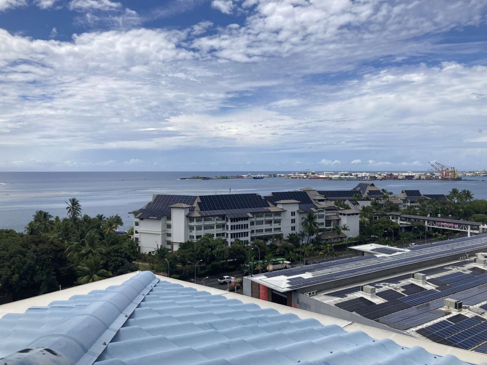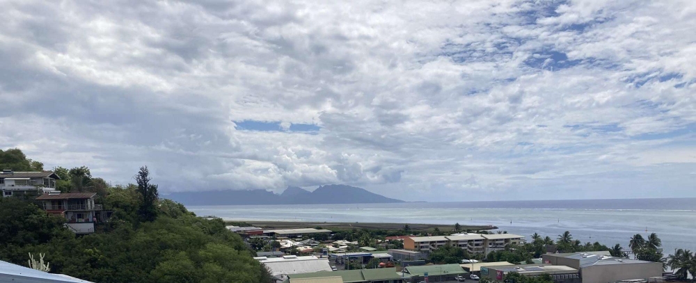 Vue à quasi 180° sur Moorea ainsi que le port de Papeete.