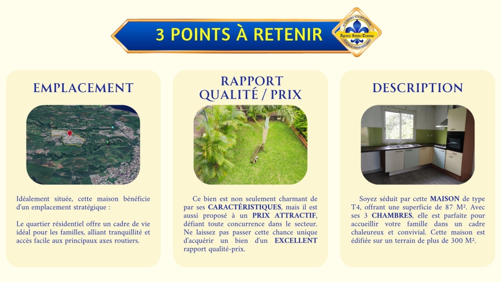 La quête d'une maison idéalement située, spacieuse et abordable peut être un défi. Chez AGENCE IMMO TRANSAC REUNION, nous vous guidons vers cette maison jumelée de type T4, parfaitement positionnée à une courte distance des facilités de Sainte Suzanne.