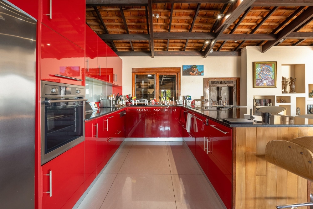 Sur les hauteurs de Miri, très belle vue mer et Moorea, cette villa d'exception à l'architecture soignée, aux volumes généreux, dans un jardin exotique avec beaucoup de plantes fleuries et ornementales vous séduira. Les bois précieux, parquet en bois et la charpente apparente créent une ambiance chaleureuse et authentique, tandis que les grandes baies vitrées arrondies offrent des vues imprenables sur les environs.