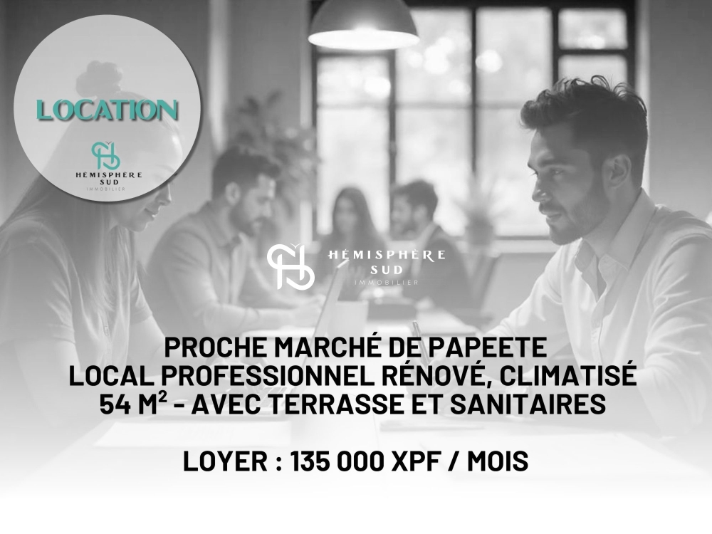 Beau local lumineux entièrement rénové de 54 m², avec terrasse et sanitaire, en étage, dans un immeuble idéalement situé au centre de Papeete.