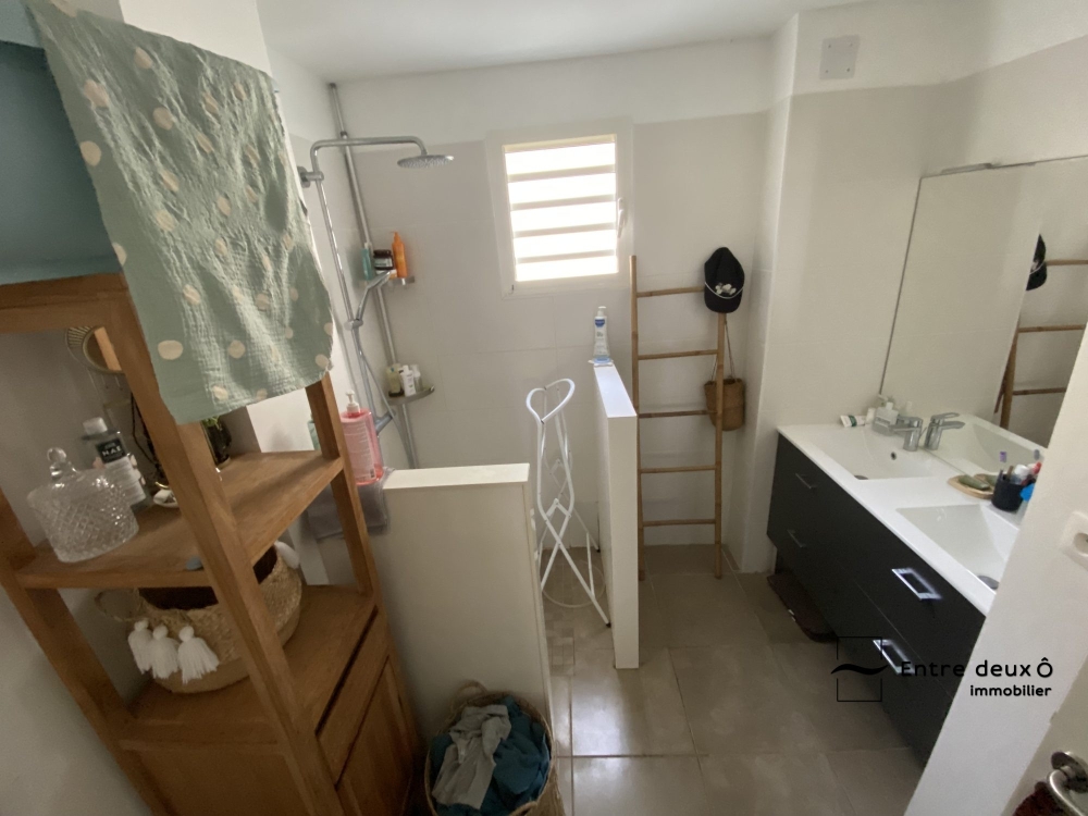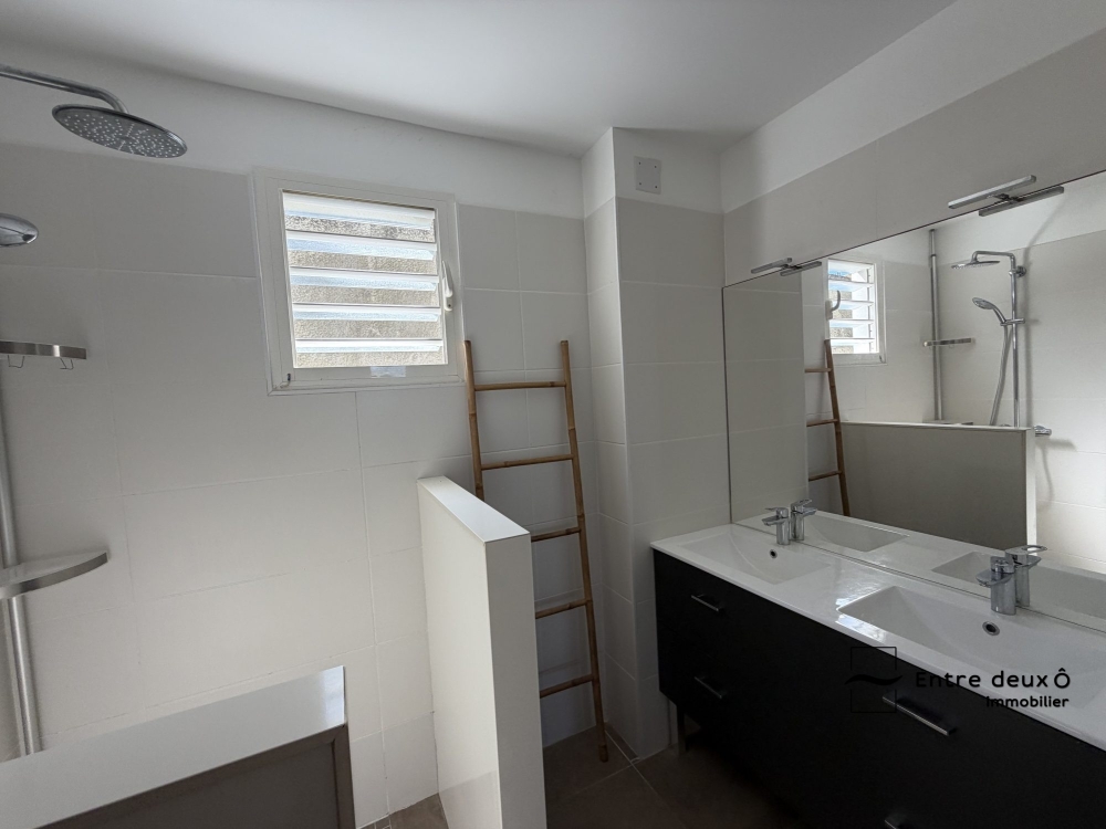 Vous finirez par une salle d'eau avec douche à l'italienne, double vasque, et wc