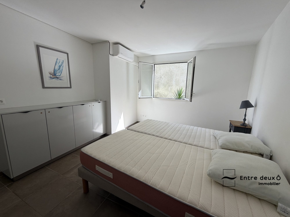 Une seconde chambre de 11m2 est également équipée de deux lits simples et de rangements