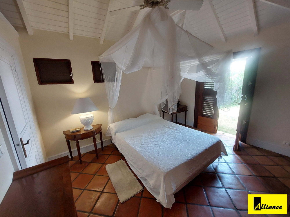 Sur la Baie Nettlé, villa de plain-pied de 5 pièces d'une superficie de 150m2 environ comprenant un grand salon / salle à manger, une cuisine américaine, 4 chambres, 3 sanitaires décorée dans un style créole avec parquet en bois rouge, jalousie aux portes et toit cathédrale. Ce bien a beaucoup de cachet!