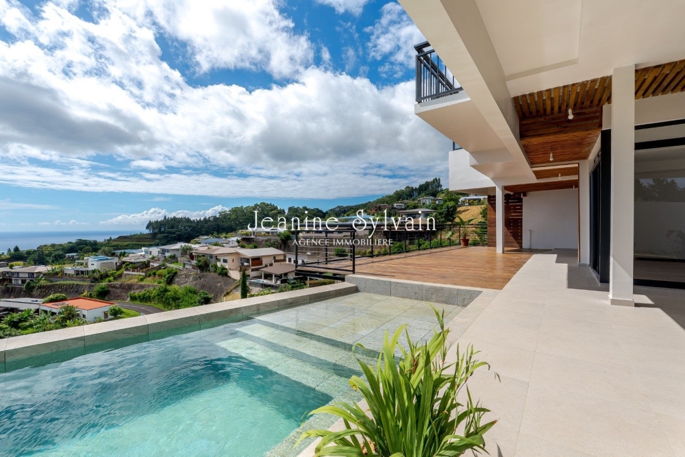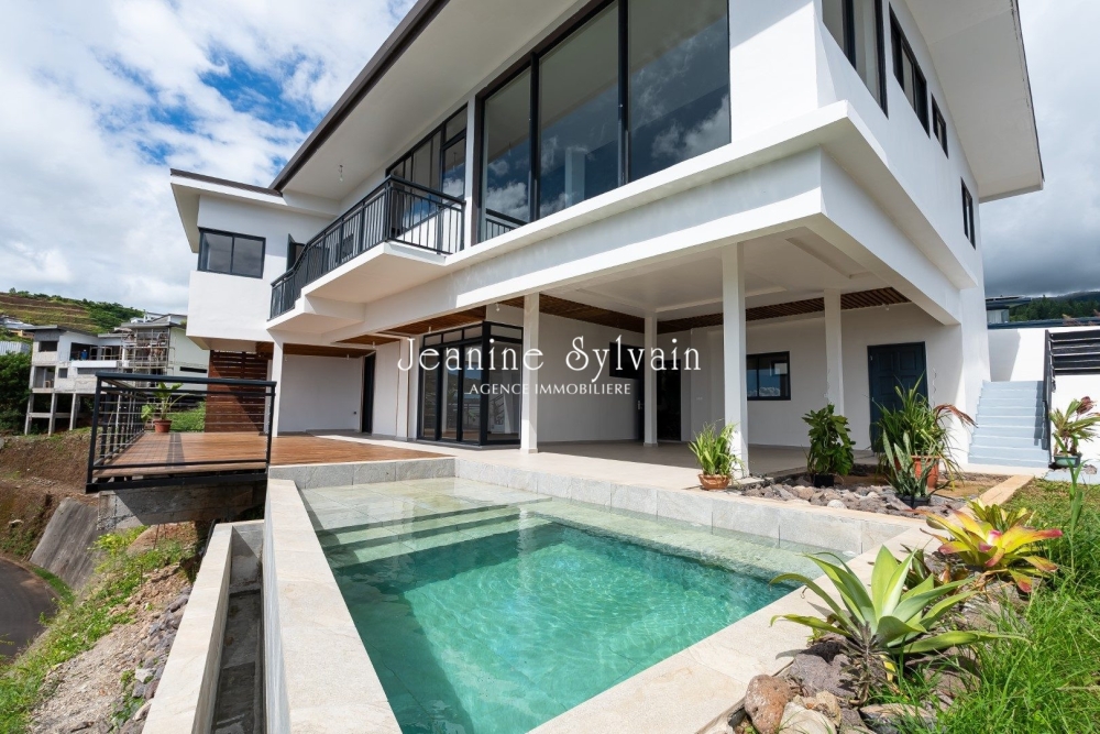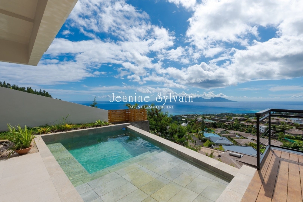 Sur les. hauteurs de Punaauia, avec vue mer et Moorea, maison neuve sur deux niveaux, comprenant: