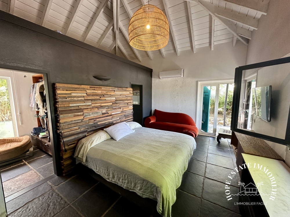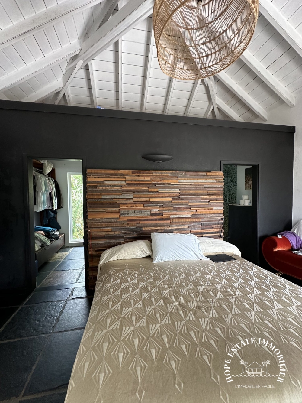 La propriété principale comprend une grande maison familiale, chaleureuse et conviviale, agrémentée de vastes terrasses offrant une vue imprenable sur la mer. Parfaitement ventilée et à l'abri de tout vis-à-vis, cette maison dispose d'une cuisine remarquable, entièrement équipée avec des matériaux et meubles de qualité. Une chambre spacieuse complète cette première partie de la villa.