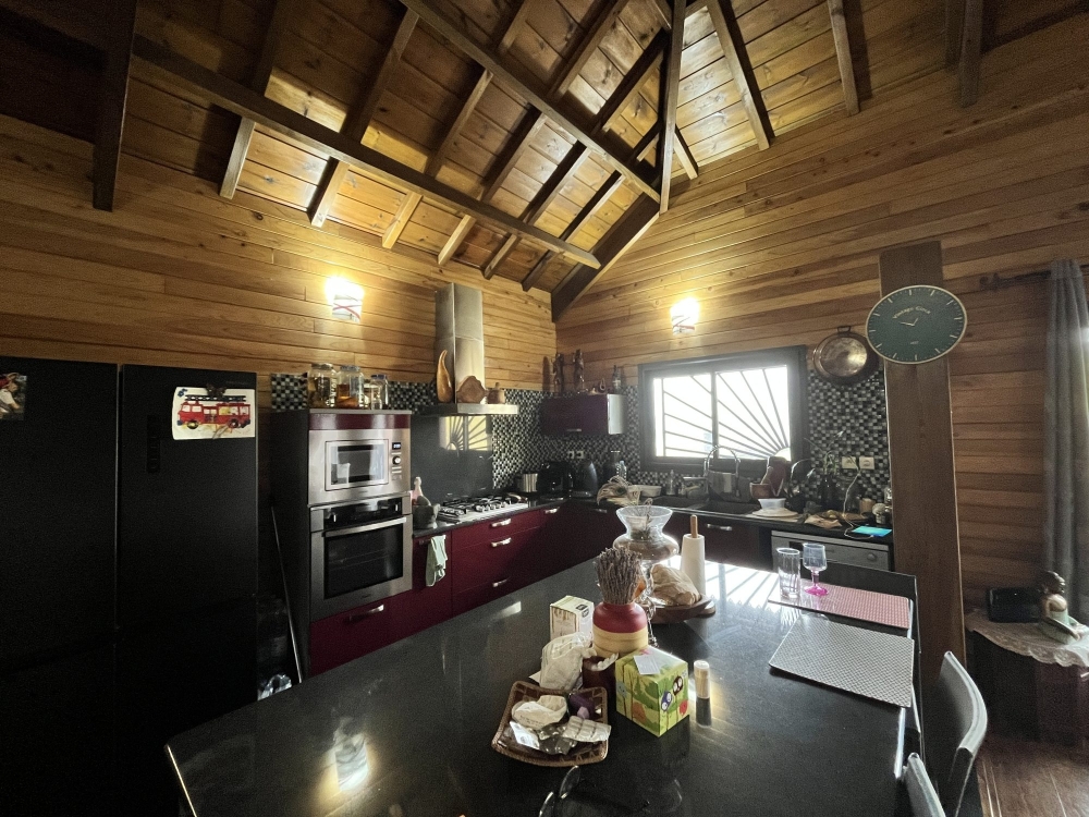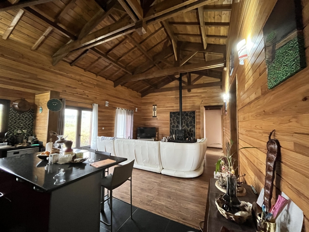À l'extérieur, vous profiterez d'une cuisine couverte de 20 m² pour cuisson au bois ou au gaz, et d'une terrasse de 11 m².