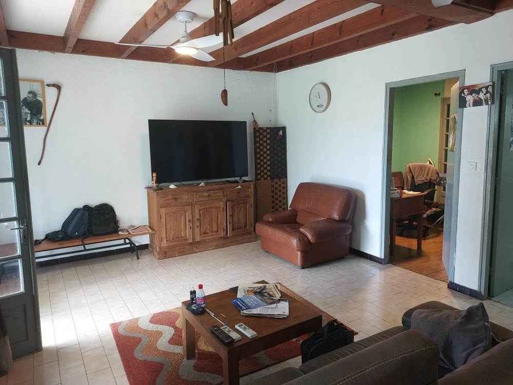 Voici une maison F6/7 de 130 m² sur un terrain d'environ 600 m², arboré, avec un salon de 30 m², une cuisine de 10 m², une salle d'eau de 7 m², un WC indépendant et 4 chambres allant de 10 à 12 m².