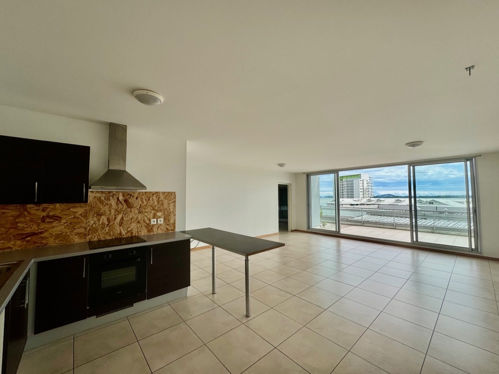 Partie jourUne cuisine américaine meublée et équipée (four, plaque de cuisson, hotte, etc.) ouverte sur un séjour spacieux et lumineux, donnant accès à une immense terrasse de 50 m², idéale pour profiter d'une vue imprenable sur la baie de Boulari et de moments de détente en plein air.