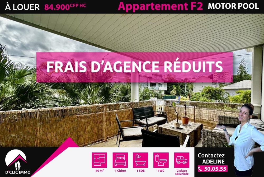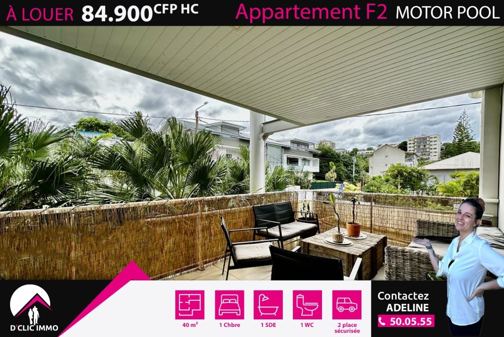 Idéalement situé à Motor Pool, dans une résidence sécurisée à seulement 2 minutes de l'Auchan Michel Ange et de l'Anse-Vata, l'agence D'CLIC IMMO vous propose en EXCLUSIVITÉ cet appartement de type F2 alliant confort, luminosité et praticité, avec terrasse de 16 m² et deux places de stationnement couvertes sécurisées.
