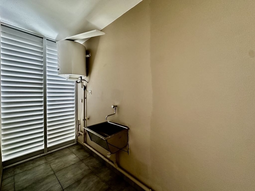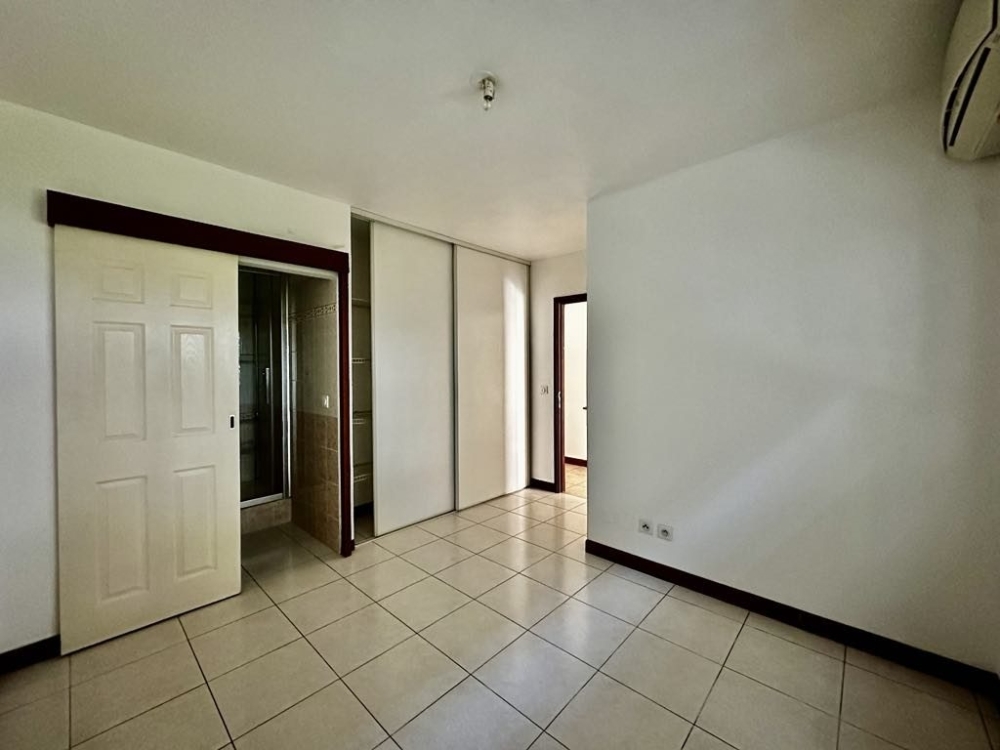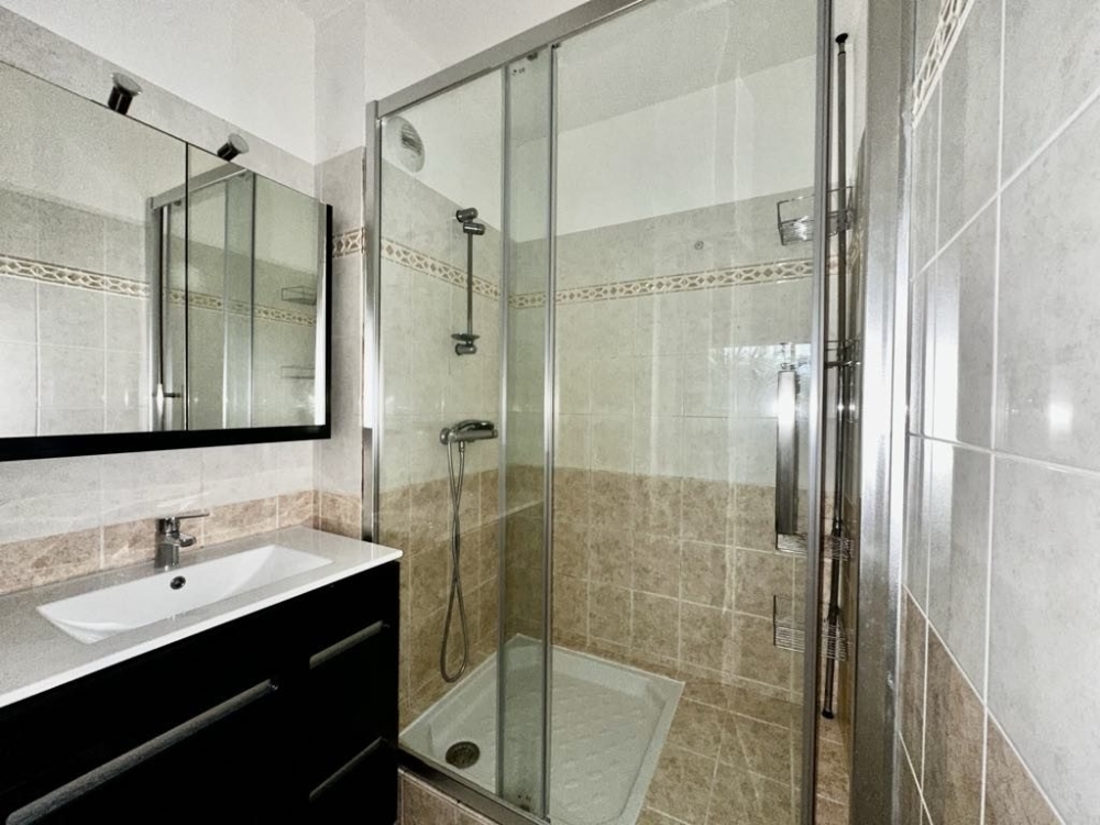 L'appartement comprend une chambre climatisée de 11 m², sécurisée par volet roulant manuel, donnant sur une salle d'eau moderne de 3,1 m² avec douche à l'italienne et meuble vasque. Une buanderie de 4 m², située sur la terrasse, complète l'espace nuit et apporte un confort supplémentaire.