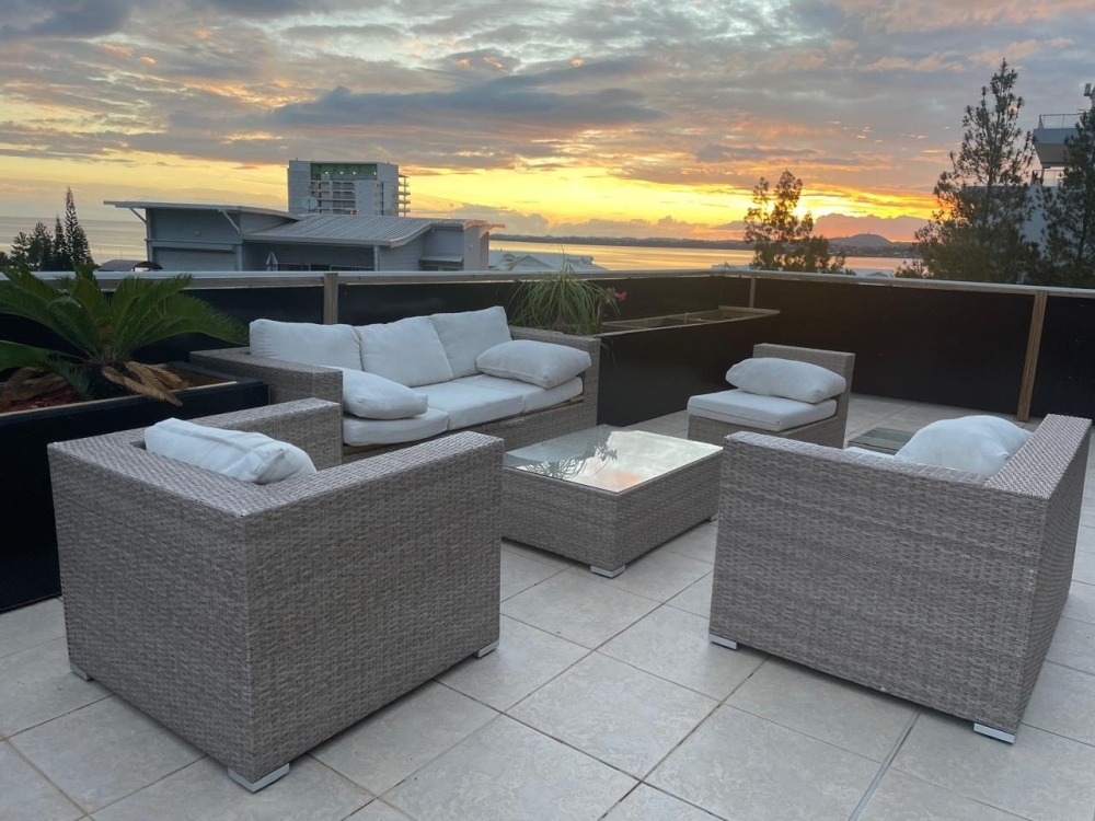 En extérieur, vous l'appartement dispose d'une très grande terrasse en rooftop de 76.10m² entièrement aménagé de salons d'extérieur, tables, vous créant un très bel espace de vie convivial, avec une superbe vue mer et montagnes.