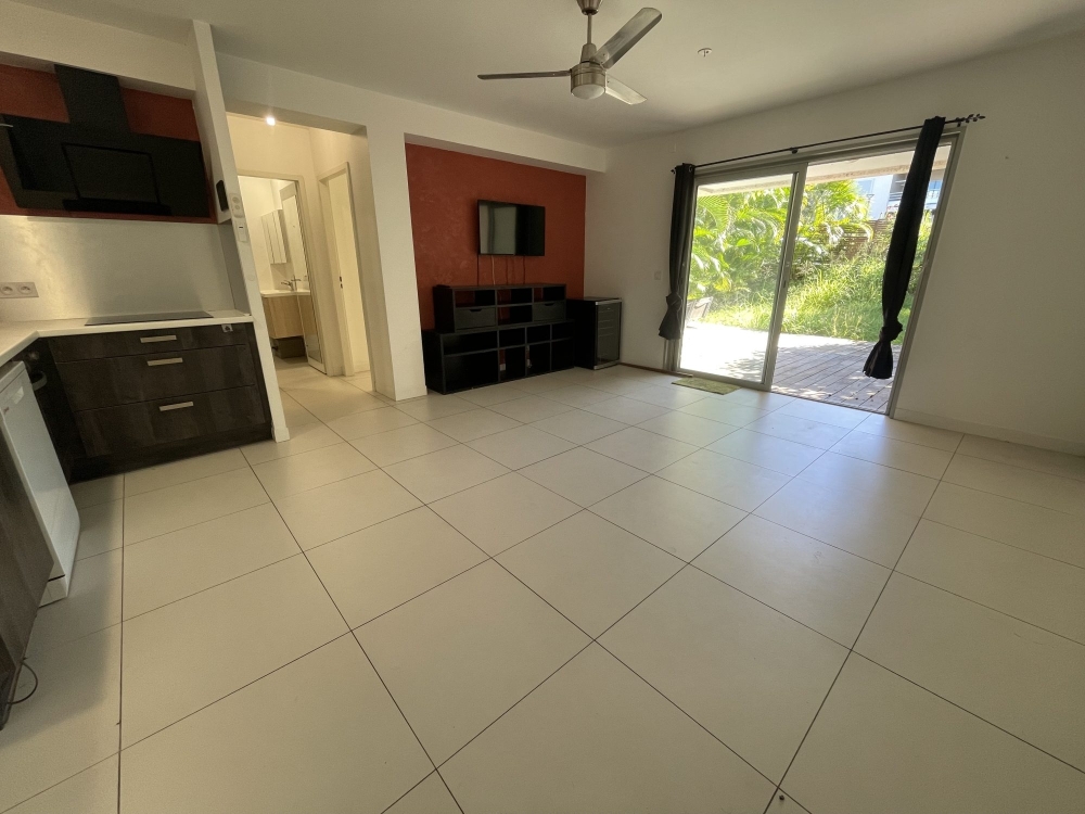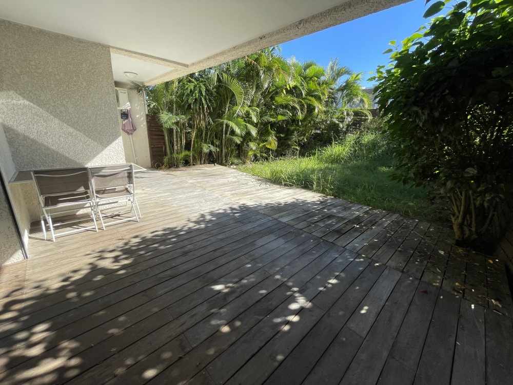 Situé en impasse dans un quartier calme de Koutio DUMBEA, à deux pas des des commerces et de toutes commodités, l'agence D'CLIC IMMO vous propose en exclusivité un spacieux appartement de type F2 en rez de jardin aux prestations modernes, très calme et sans vis à vis de 44.81m² habitable + 19m² de terrasse + 65m² de jardin + 3 places de parking privatives et sécurisées, dans la résidence sécurisée « LE BARY 2 », datant de 2018, très bien entretenue.