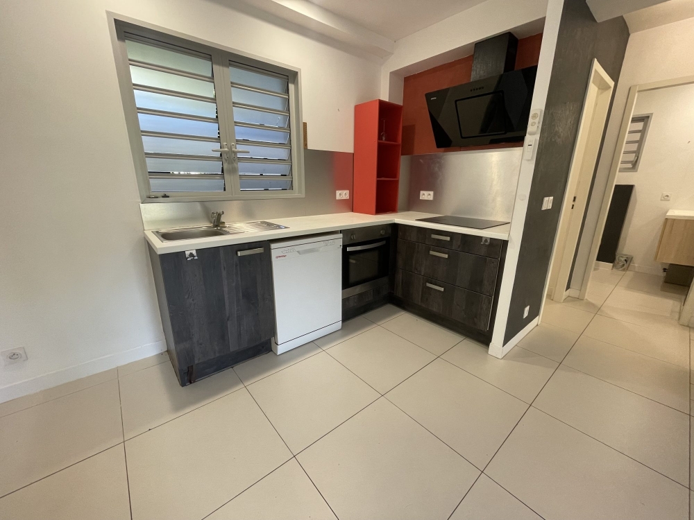 En partie jour, le bien est composé d'une belle pièce principale lumineuse de 25.31m² avec brasseur d'air, d'une buanderie, et d'une belle cuisine meublée et équipée (plaque, four, hotte, lave vaisselle, rangements hauts et bas), donnant sur la terrasse et le jardin, sans vis à vis.