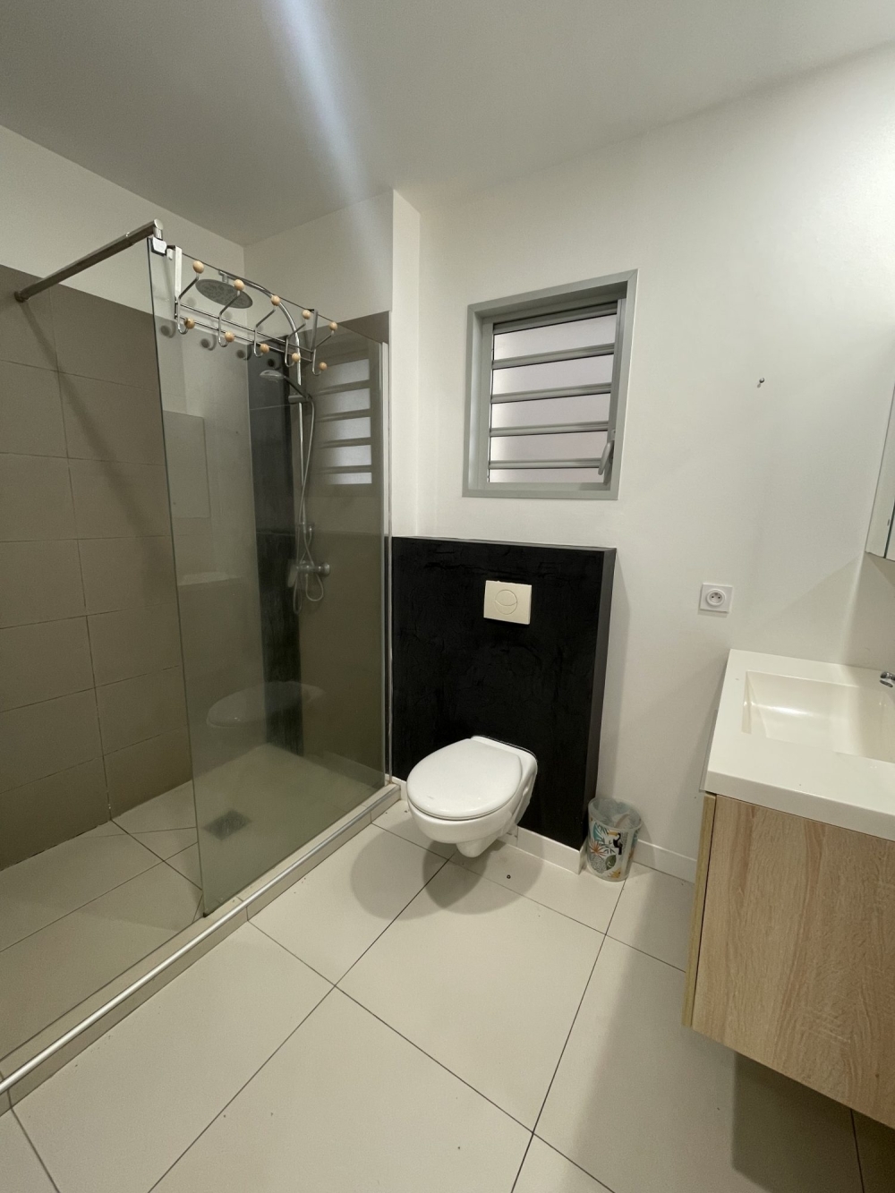 En partie nuit, vous profiterez d'une belle chambre climatisée avec placards de 10.81m² sécurisée par un volet roulant manuel et d'une grande salle d'eau de 5.03m² avec douche à l'italienne, meuble vasque et WC attenant.