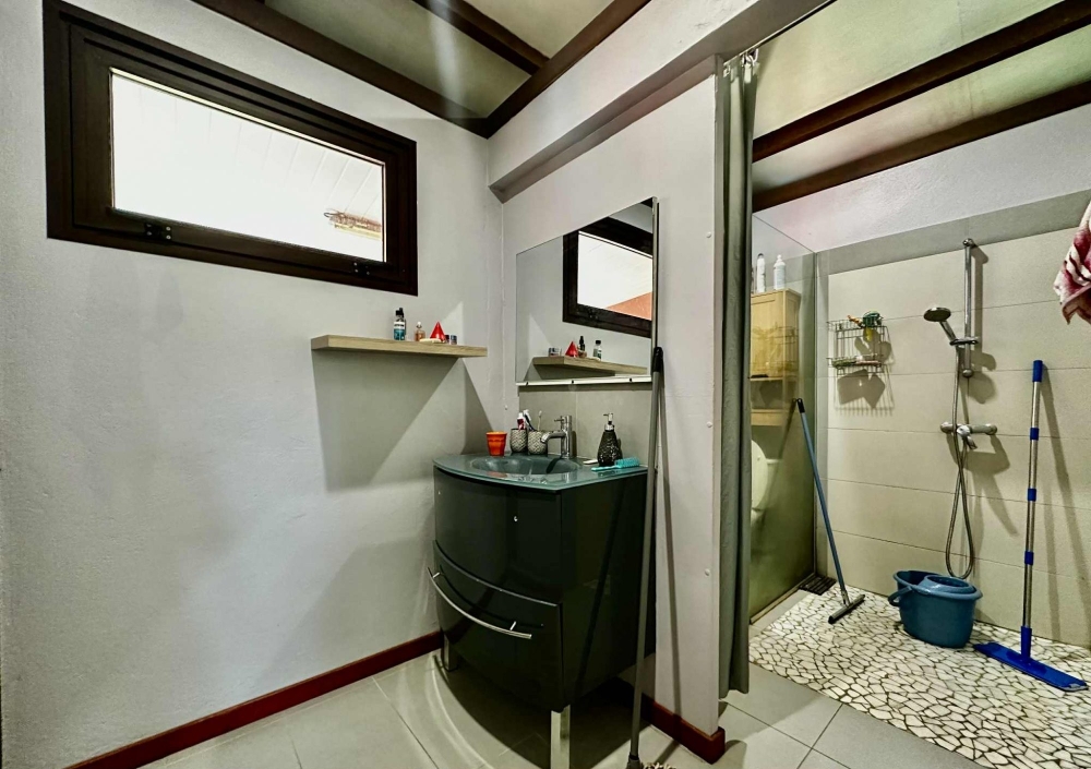 Partie nuitLa partie nuit comprend une chambre climatisée de 11 m² avec salle d'eau attenante de 5 m², offrant confort et praticité.