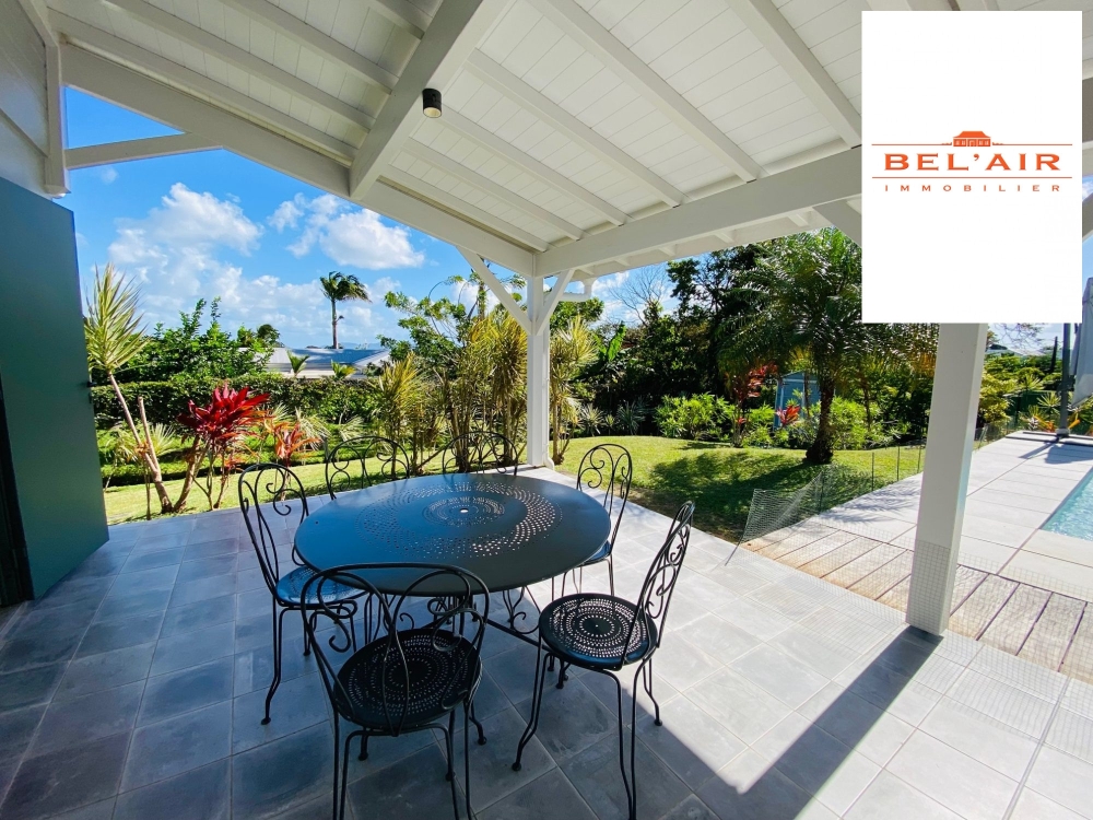La vaste terrasse n'est pas en reste et invite à la détente et aux réceptions conviviales. Le tout est édifié sur un terrain plat paysagé de 1250 m² environ. Les finitions sont soignées (climatisations, très nombreux rangements avec placards intégrés dans la villa, volets roulants électriques....deux rangements extérieurs)