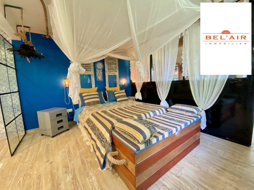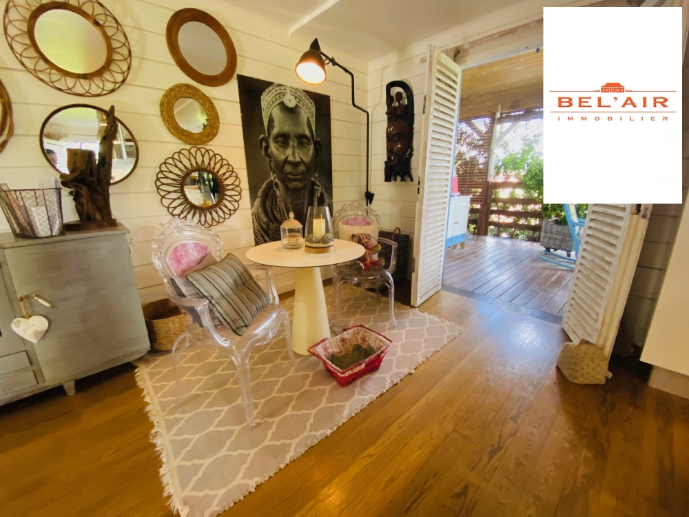 Villa très bien entretenue, située à proximité de PELLETIER, avec une vue campagne et de très beaux volumes, édifiée sur deux niveaux , à l'étage : grand séjour -cuisine aménagée et équipée, coursive et terrasse couverte, chambre parentale avec salle d'eau et dressing, au rez de chaussée : appartement composé de cuisine aménagée et équipée, chambre, douche et wc, terrasse. Agrémentée d'un bungalow pour rangement et de deux citernes d'eau, ce bien est disponible de suite.