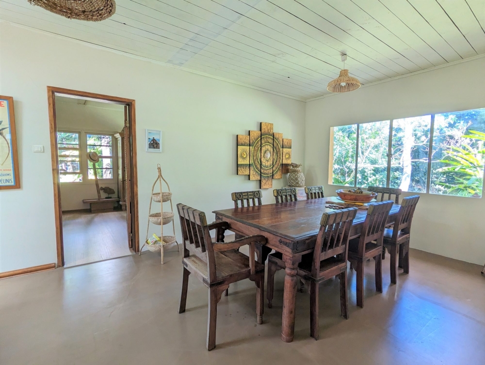 Situé en position dominante, au pied du Mont Dore et en impasse, villa en maçonnerie d'environ 150m², un patio de 60m², une terrasse couverte de 50m² et une piscine avec deck et faré. Le bien dispose également d'un Faré Mélanésien traditionnel de 45m², aménagé avec une salle d'eau, WC et une chambre. Un bungalow supplémentaire de 16m² et un atelier complètent le bien. Le tout bâti sur un magnifique terrain de 50 ares.