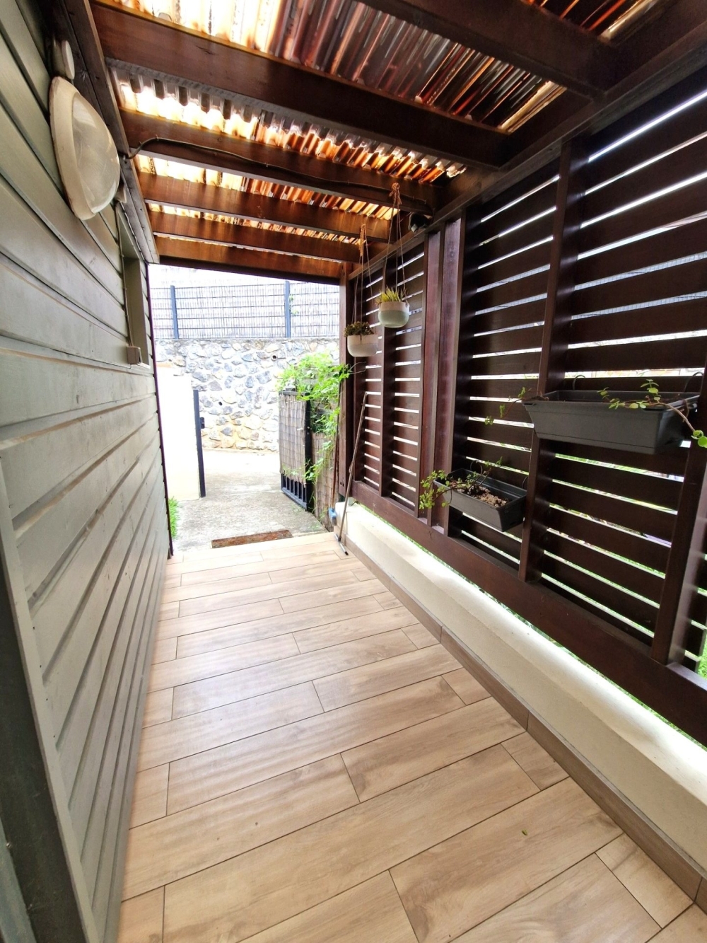 Disponbile le 1/10/2025 - Résidence LE JARDIN DE L'EPERON, 80 route de l'Eperon - Belle villa de type F5 jumelée (non meublée) sur 2 niveaux, d'une surface habitable de 100 m² + varangue de 12 m² prolongée d'une large terrasse (deck) de 30 m2 environ avec limite de propriété bien arborée par des multipliants, avec jardinet et porche à l'arrière ; offrant :