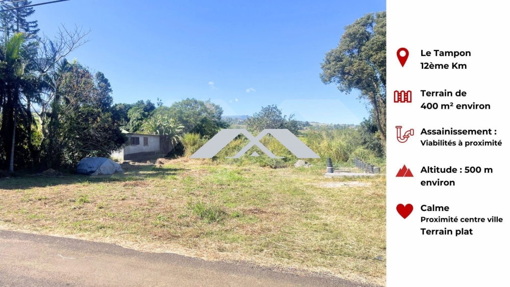 MAXImmo vous propose dans le quartier du 12 ème au Tampon, un terrain constructible d'environ 400 m² et borné.