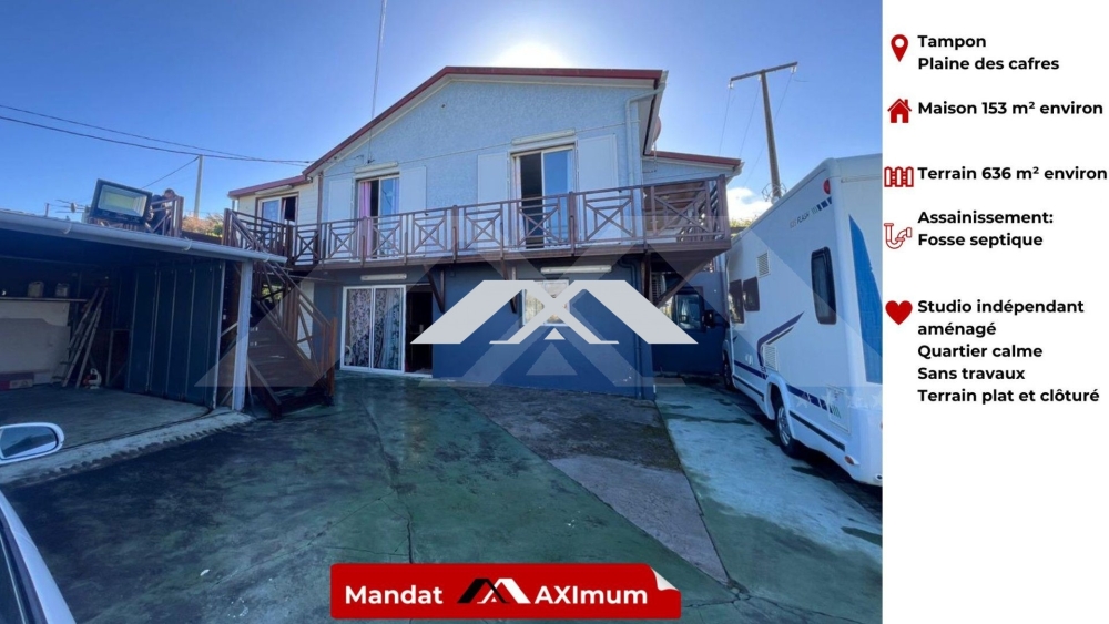 MAXImmo vous propose cette Villa F5 + Studio Indépendant – Le Tampon (Plaine des Cafres)