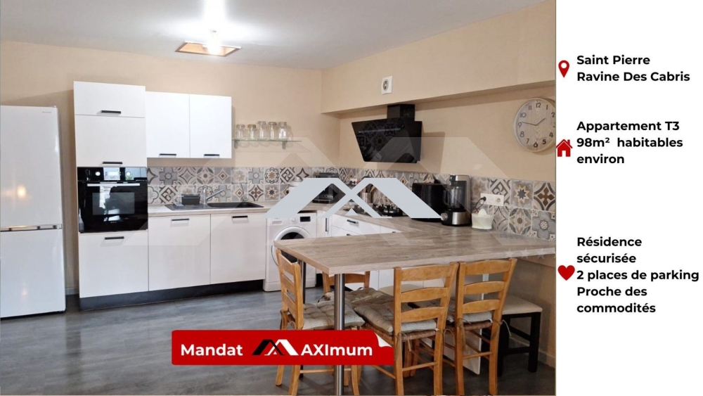 MAXImmo vous propose à la location ce superbe appartement T3 meublé de 98 m², situé en plein centre de la Ravine des Cabris, dans une résidence calme et sécurisée, à Saint-Pierre capitale du Sud de l'île.