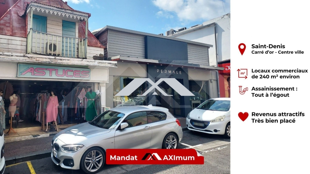 MAXImmo vous propose en plein coeur du centre ville de Saint-Denis, Carré d'Or, cet ensemble immobilier composé de 2 locaux commerciaux de 110m² et 130m², vendus loués avec des baux 3,6,9 ans à 2892€/mois et 2505€/mois chacun.