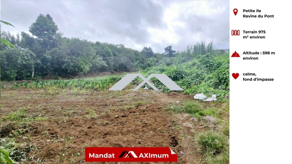 Découvrez cette superbe parcelle de 975 m², idéalement située sur les hauteurs prisées de Petite-Île, dans le secteur recherché de la Ravine du Pont, à 598 mètres d'altitude.