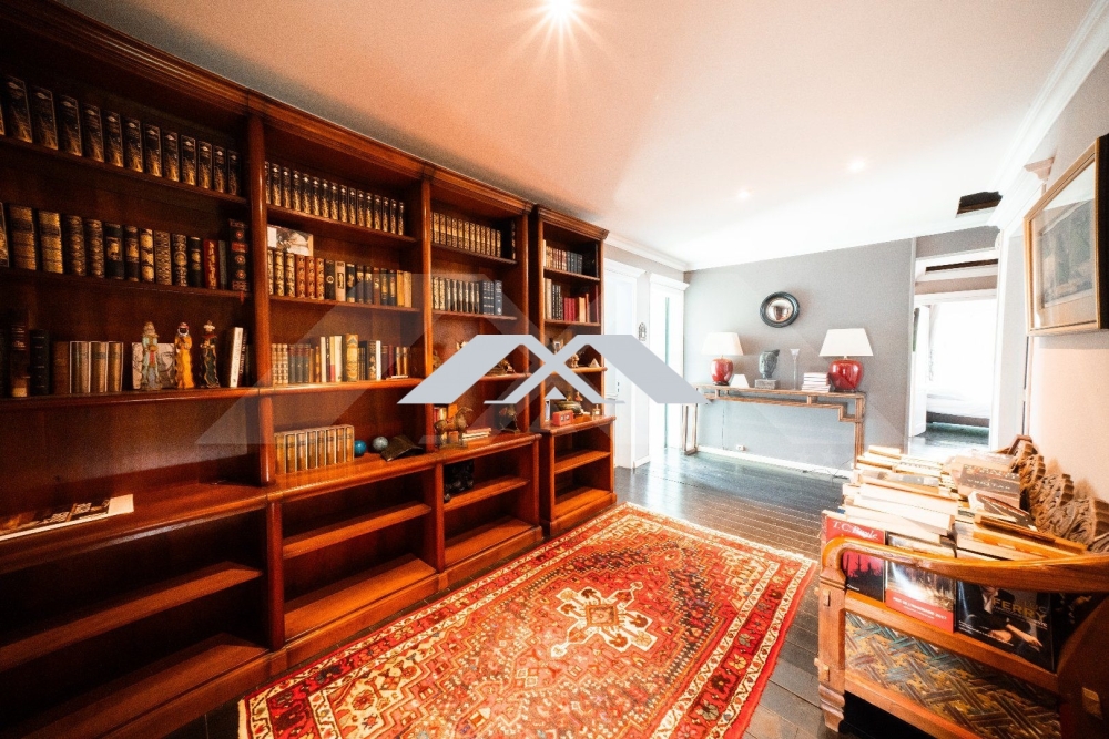 Une belle maison sur deux niveaux comprenant au rez-de-chaussée, un bar spacieux avec cave et buanderie, deux bureaux lumineux, une salle de bain rénovée, un wc indépendant, un séjour avec cheminée et une cuisine. À l'étage, 5 chambres dont une suite avec sa propre salle de bain, 2 buanderies et un balcon agréable offrant une vue mer.