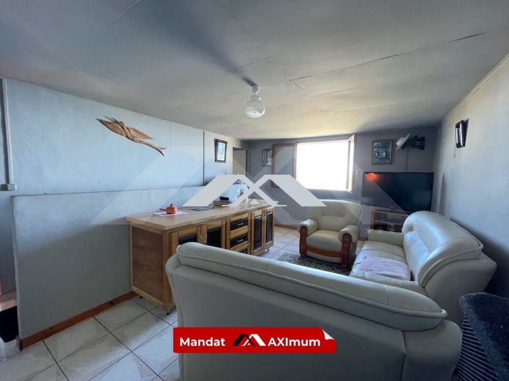 A l'étage, un salon avec vue mer (18,20 m² environ), une cuisine (6,65 m² environ) une salle de bain (4,80 m² environ) avec wc séparé, trois chambres (10 m², 9,65 m², 9,10 m² environ)