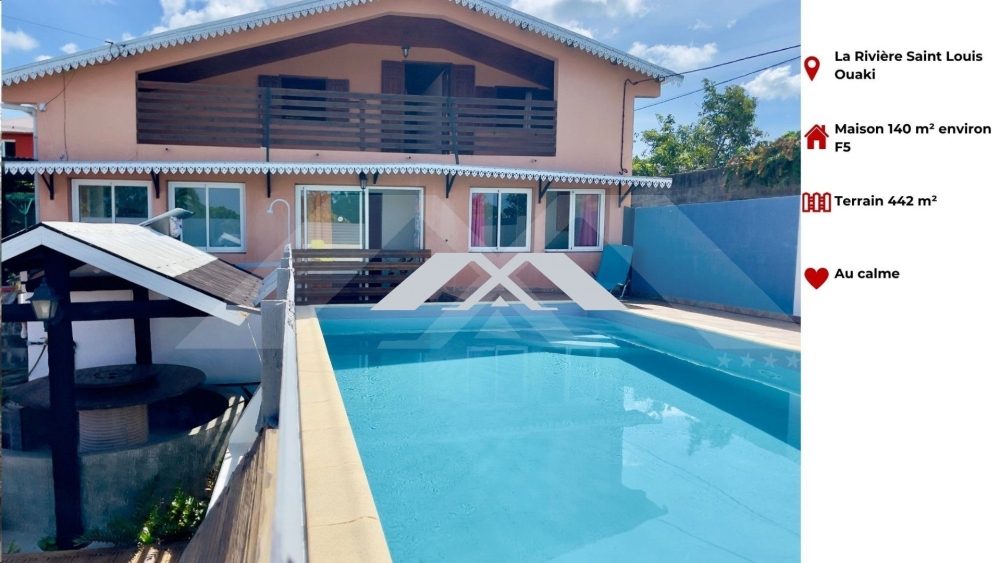 MAXImmo vous propose dans le quartier paisible du Ouaki, à La Rivière Saint-Louis, cette maison F5 d'environ 140 m² construite sur une parcelle d'environ 442 m² offre un cadre de vie agréable et fonctionnel.