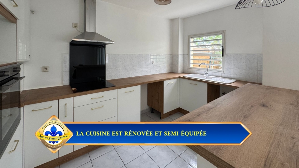 • Une CUISINE semi-équipée, rénovée et ouverte.