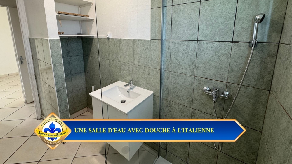 DOUCHE À L'ITALIENNE MODERNE : La salle d'eau est équipée d'une douche à l'italienne et d'un meuble vasque, offrant un confort contemporain.