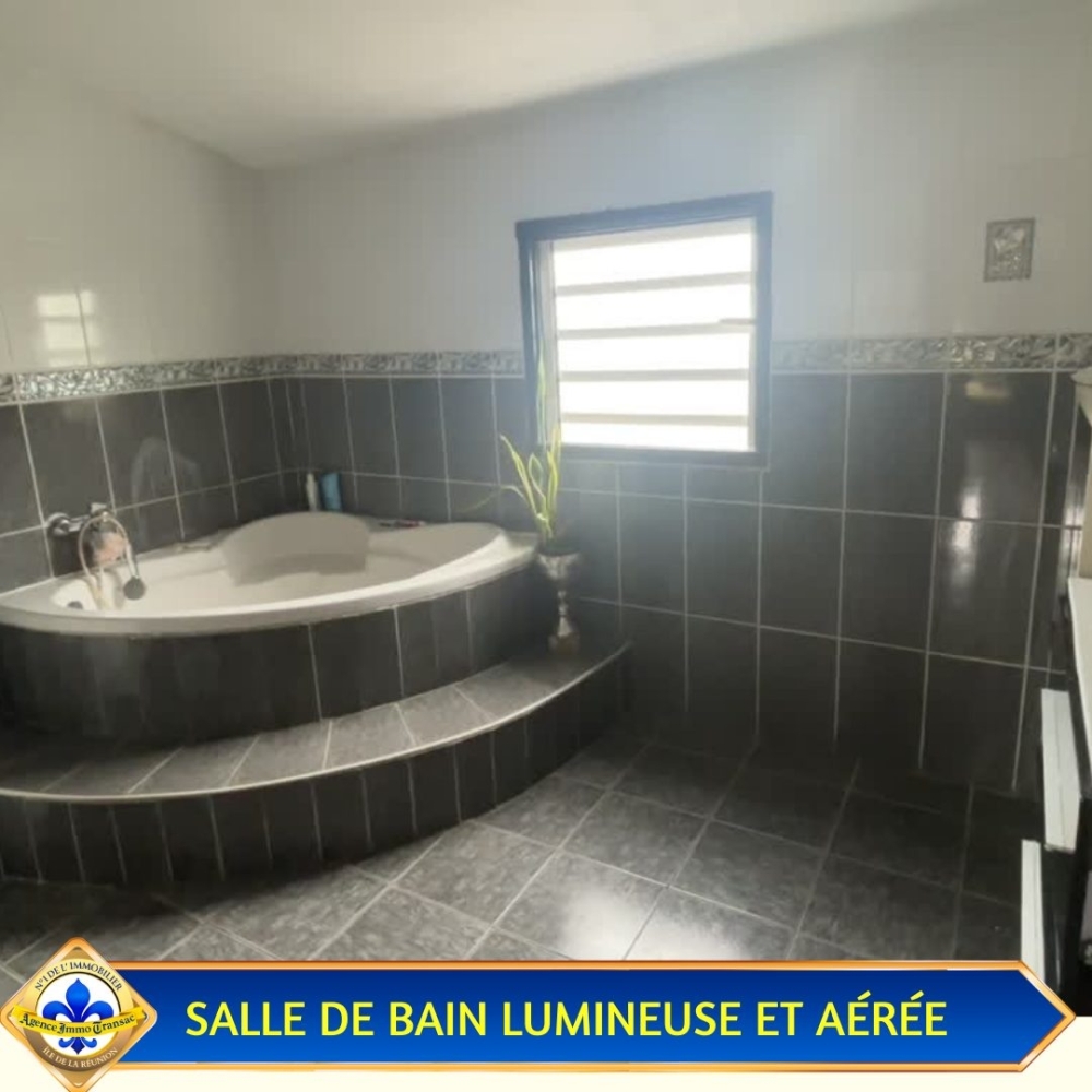 SALLE DE BAIN ÉLÉGANTE : Équipée d'une baignoire d'angle et d'une fenêtre pour une bonne aération et une luminosité agréable.
