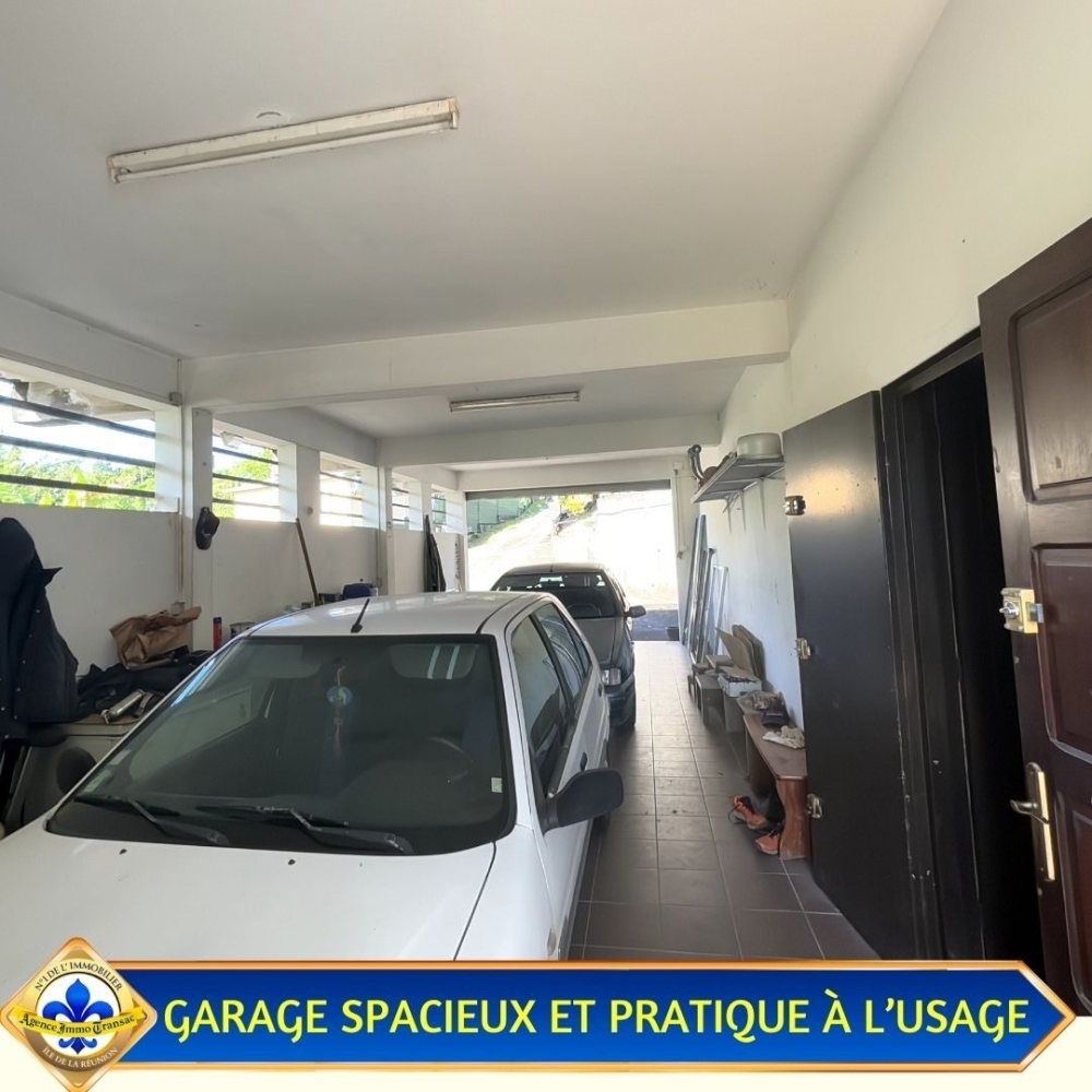 GARAGE SPACIEUX ET PRATIQUE À L'USAGE : Un garage de grande capacité permet d'accueillir deux véhicules, avec des espaces dédiés au rangement ou au bricolage.