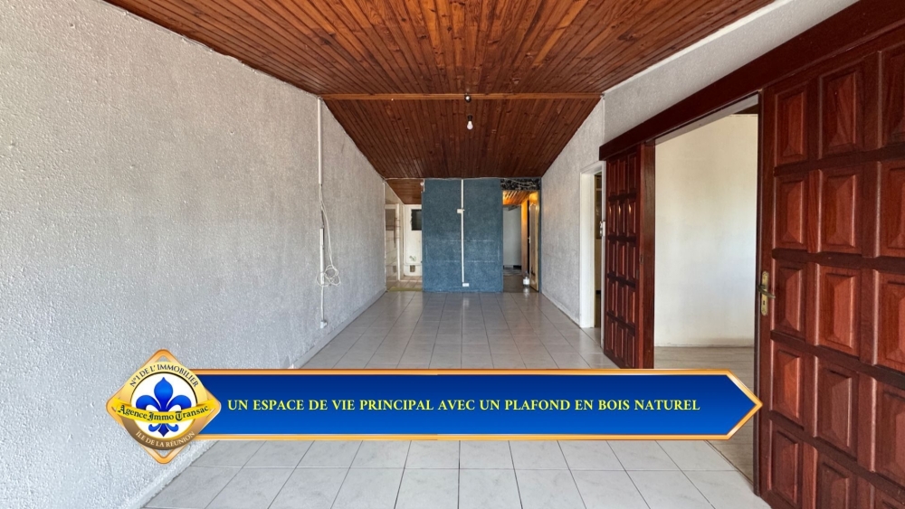UNE PIÈCE À VIVRE CHALEUREUSE ET LUMINEUSE : La pièce principale, avec son plafond en bois naturel et son carrelage clair, est baignée de lumière naturelle. Elle invite à des moments conviviaux, en famille ou entre amis.