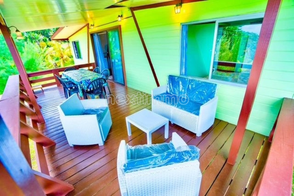 AFAAHITI / PLEINE HAUTEUR... LOUE CHALET F3 DE 90 M2, 2 CHAMBRES, TERRAIN ARBORE 4000 M2, CADRE VERDOYANT ET CALME, VUE 180° SUR MER...