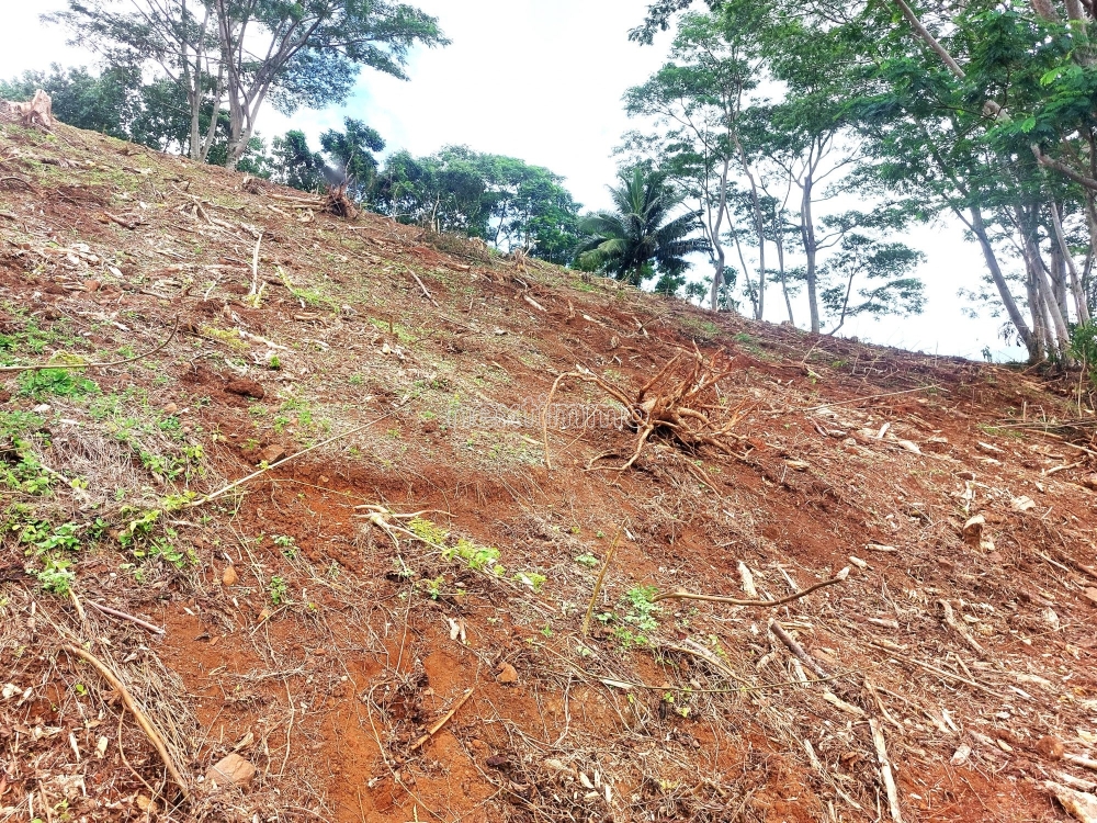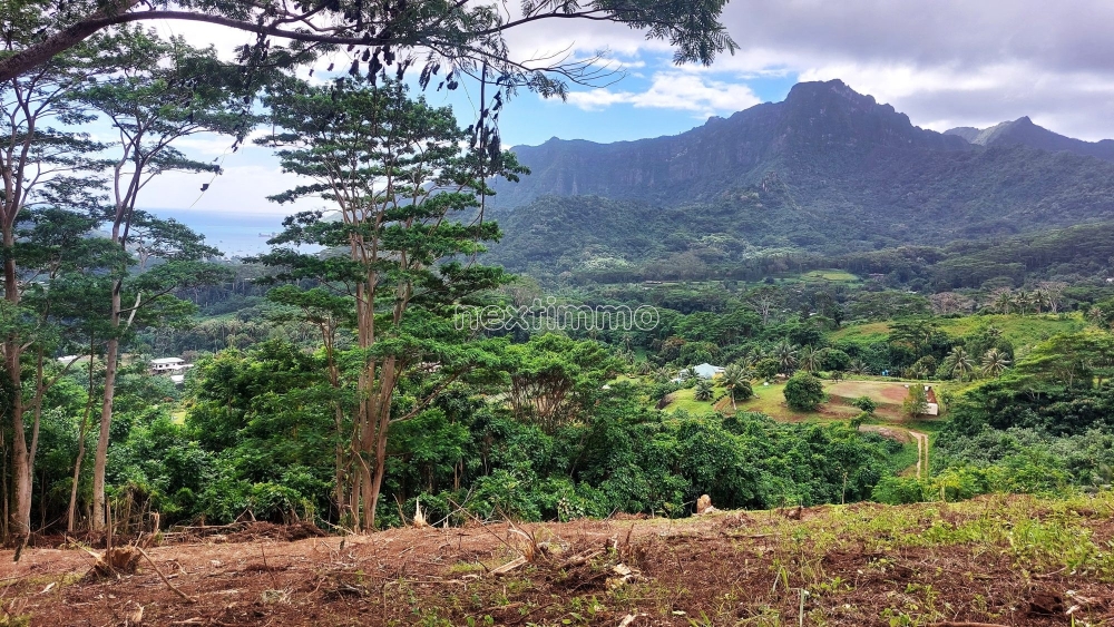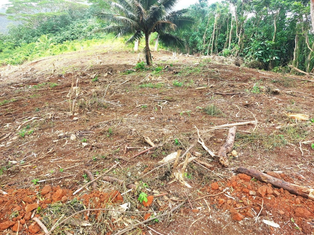 En pleine nature, accès avec SUV conseillé, offrant magnifique vue mer et Montagne (Juste en face du Mont ROTUI. Prévoir construction en autonomie énergétique (Eau et Électricité)