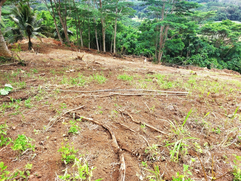 En pleine nature, accès avec SUV conseillé, offrant magnifique vue mer et Montagne (Juste en face du Mont ROTUI. Prévoir construction en autonomie énergétique (Eau et Électricité)