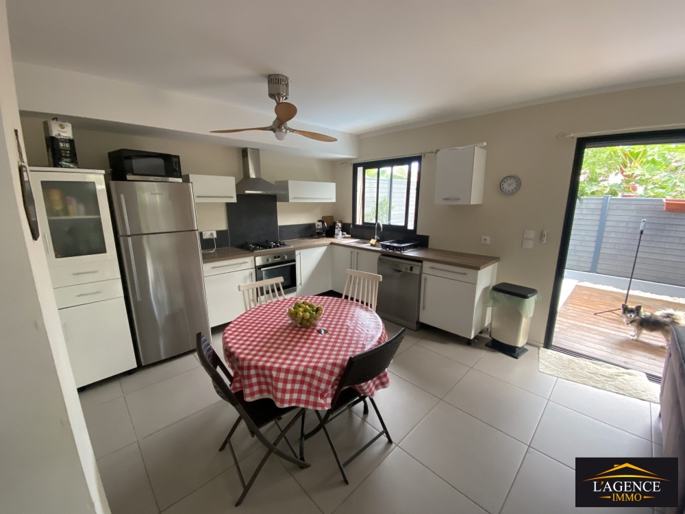 Cette villa jumelée de type F4 sur trois niveaux offre un cadre de vie idéal. Au rez-de-chaussée, vous trouverez une cuisine équipée ouverte sur le séjour, un salon lumineux, un WC indépendant ainsi qu'une buanderie avec pompe à chaleur.