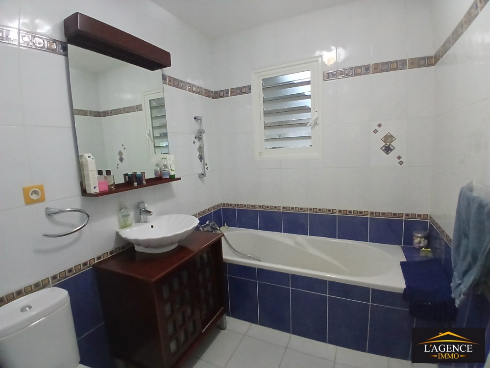 Elle se compose d'une cuisine équipée avec coin buanderie, d'un vaste séjour/salle à manger, d'une salle de bain avec WC, ainsi que de trois chambres climatisées avec placards, dont une suite parentale avec dressing, salle d'eau et WC.