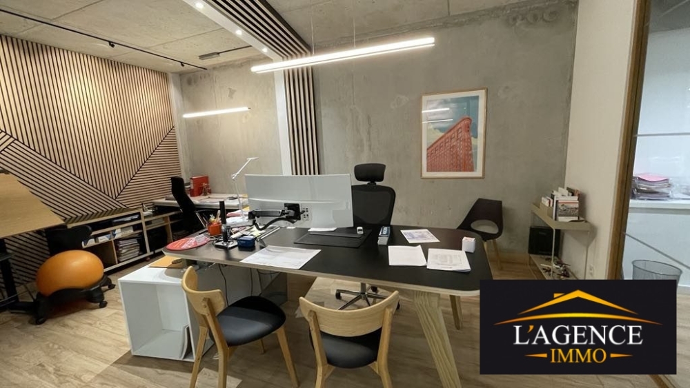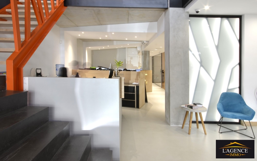 À vendre, bureaux modernes et design idéalement situés à Ducos le Centre, avec une excellente visibilité grâce à une vitrine. Ces locaux, en excellent état, ont été entièrement agencés avec des matériaux de qualité et un souci du détail qui leur confère une atmosphère à la fois professionnelle et chaleureuse. Aucun mobilier n'est à prévoir, tout est prêt à l'emploi.