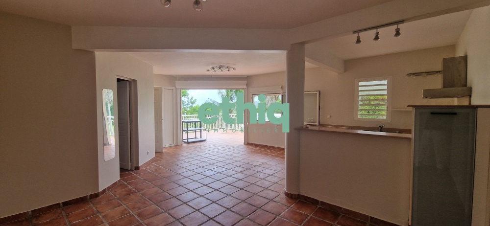 Appartement T3 situé en rez-de-jardin d'une villa de trois logements seulement. L'accès se fait par un escalier privé qui vous conduit directement à une vaste terrasse entourant l'appartement. De là, vous profitez d'une ouverture directe sur la piscine et d'un petit jardin privatif agrémenté de palmiers et d'un cocotier.